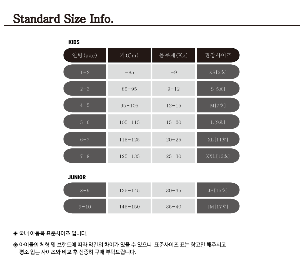 아이의 신체발달 및 체형에 따라 사이즈가 다를 수 있습니다
