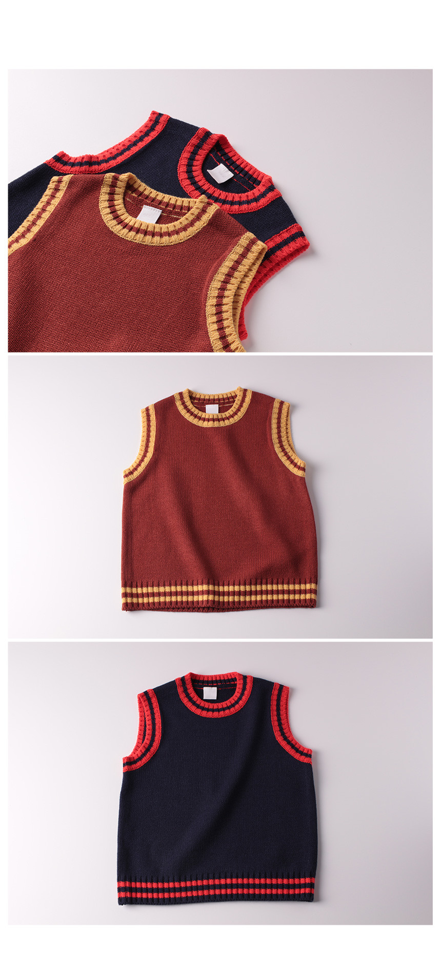 베이직한 디자인과 포인트 컬러로 배색을 준 니트 조끼예요! 지금부터 쭉~ 함께해요!