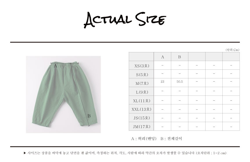 아이의 신체발달 및 체형에 따라 사이즈가 다를 수 있습니다