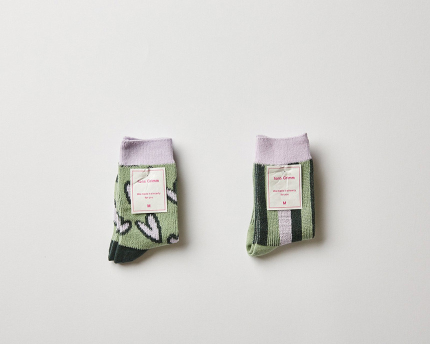 러블리한 하트와 스타일리시한 스트라이프 패턴의 자가드 삭스에요 :)