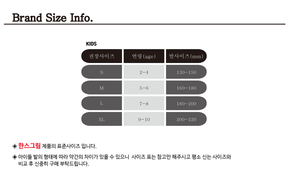 아이의 신체발달 및 체형에 따라 사이즈가 다를 수 있습니다