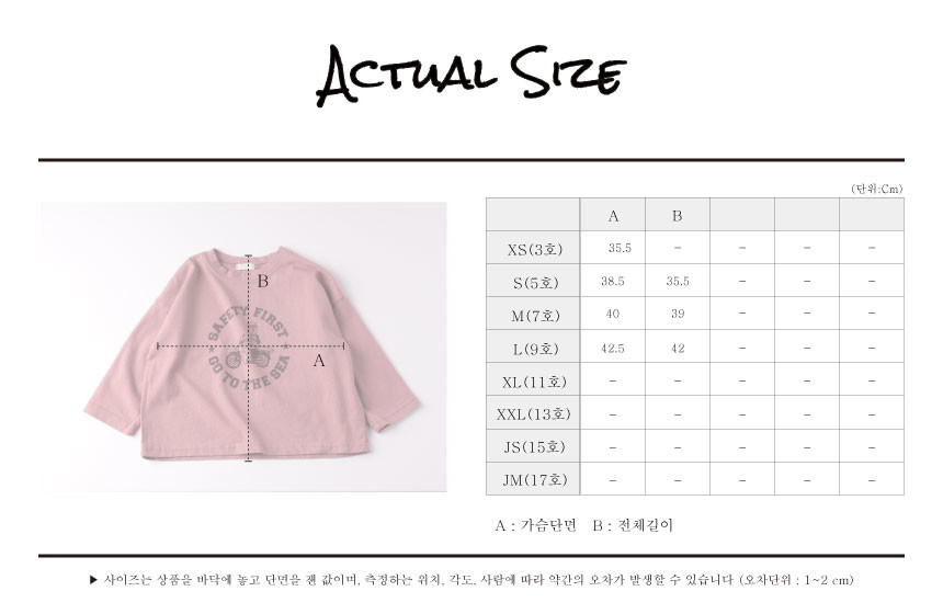 아이의 신체발달 및 체형에 따라 사이즈가 다를 수 있습니다