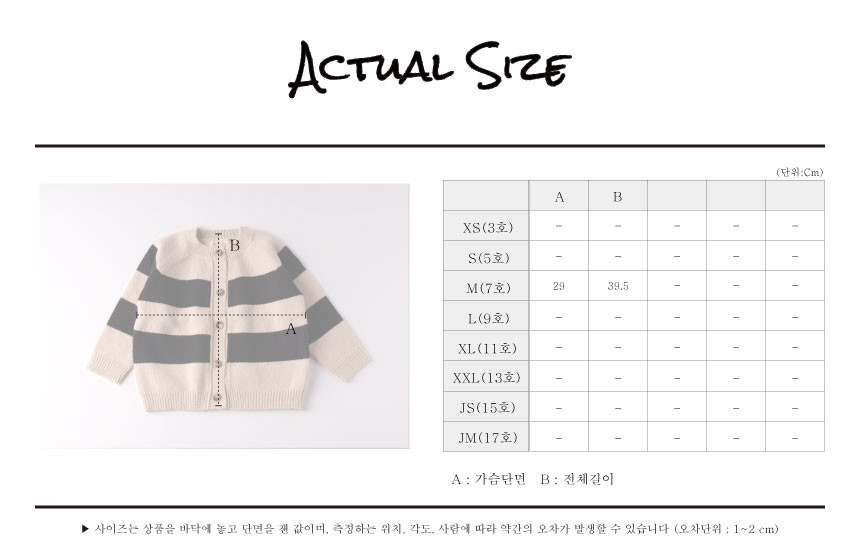 아이의 신체발달 및 체형에 따라 사이즈가 다를 수 있습니다